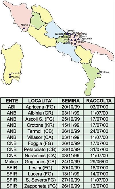 Nazionale), in 14 località del sud Italia e Sardegna (vedi fig.1).