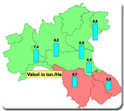 hanno oscillato tra le 8,2 e le 9,8 t/ha, mentre livelli produttivi inferiori