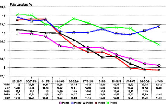 delle polarizzazioni settimanali degli ultimi 5 anni, si nota che ai valori